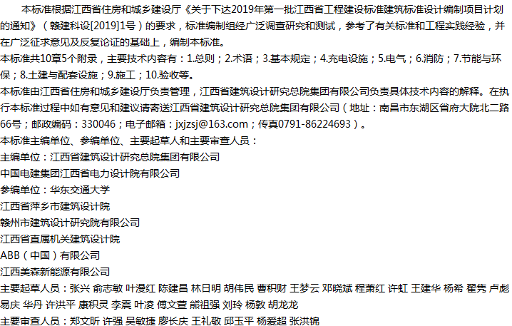 江西省电动汽车充电设施建设技术标准收藏