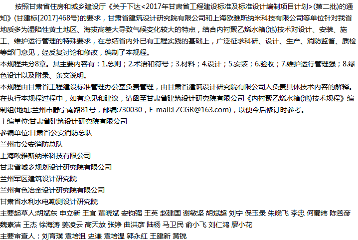 当前位置:首页 > 标准规范 > 内衬聚乙烯水箱(池)技术规程 <返回