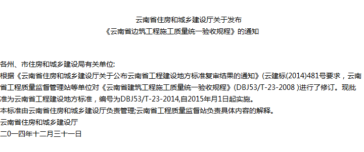 云南省建筑工程施工质量验收统一规程收藏