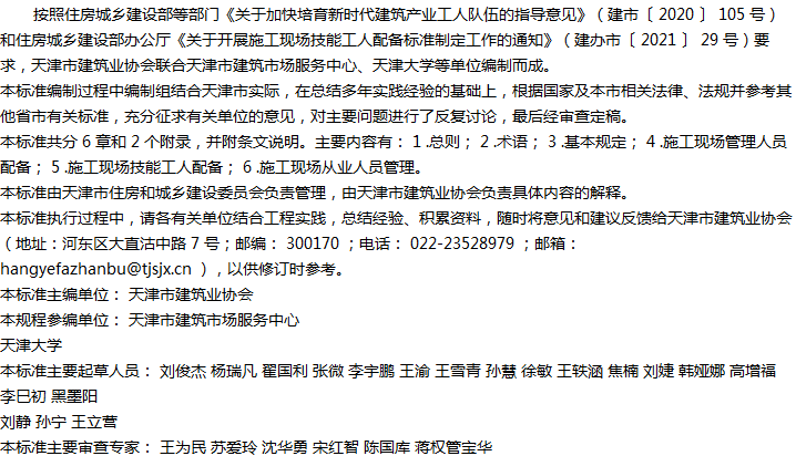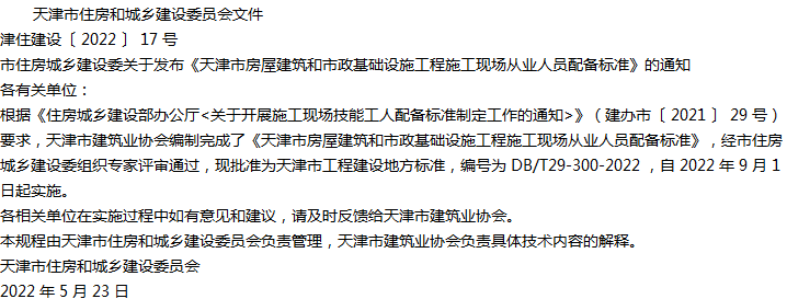 天津市房屋建筑和市政基础设施工程施工现场从业人员配备标准收藏