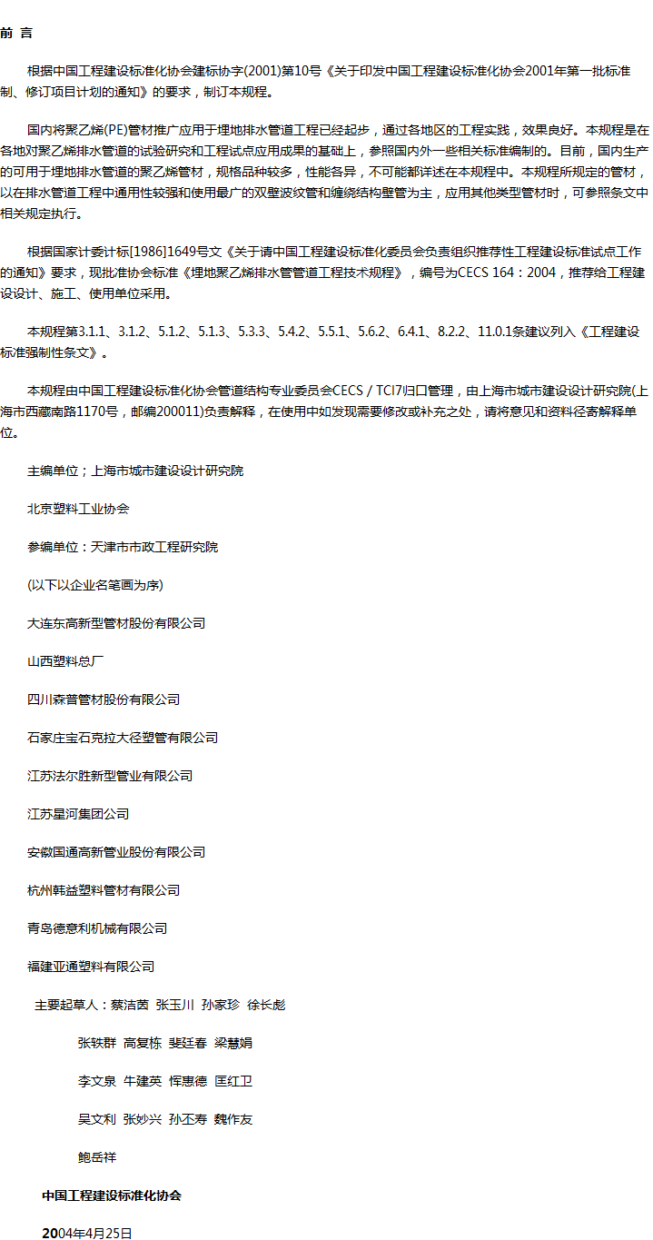 埋地聚乙烯排水管管道工程技术规程收藏