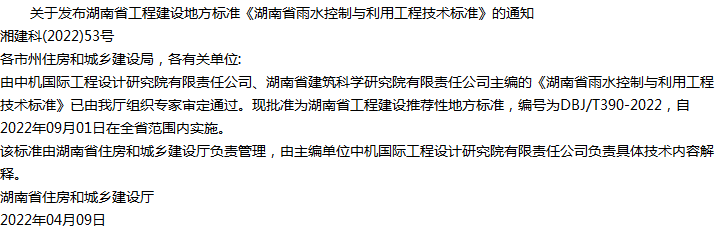 湖南省雨水控制与利用工程技术标准收藏