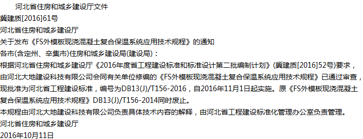 FS外模板现浇混凝土复合保温系统应用技术规程收藏