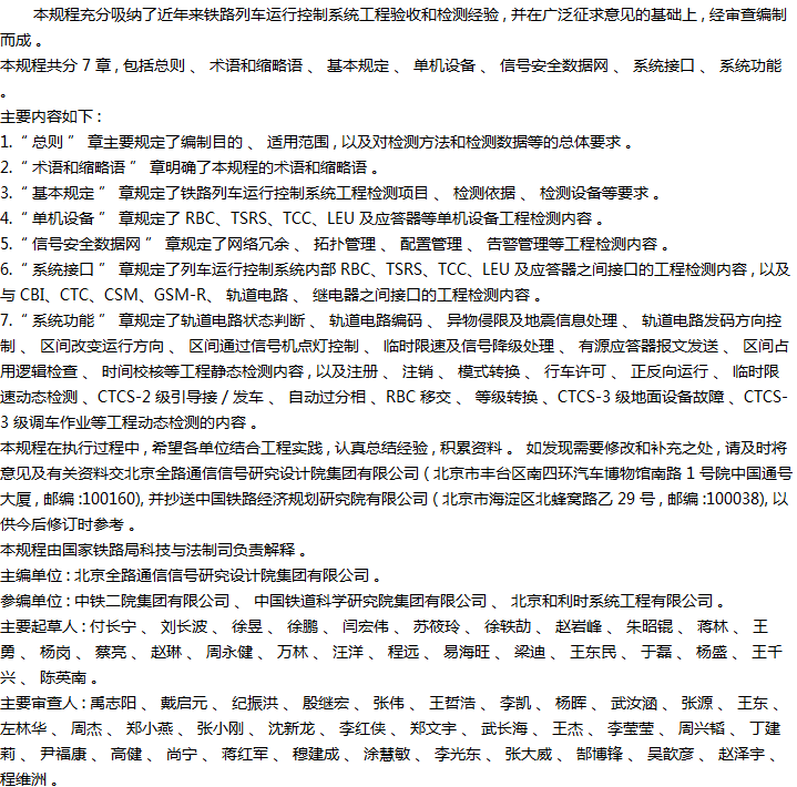 铁路列车运行控制系统工程检测规程收藏