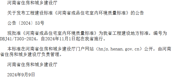 河南省成品住宅室内环境质量标准收藏