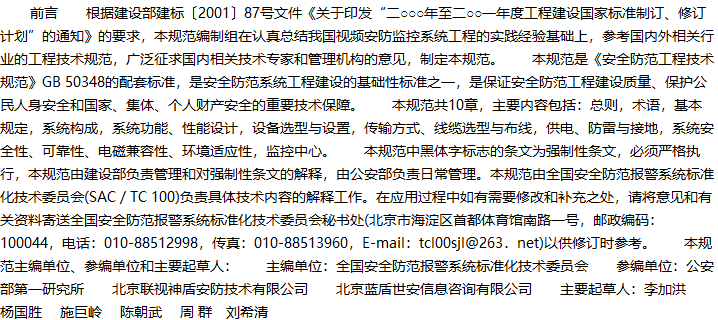 视频安防监控系统工程设计规范收藏