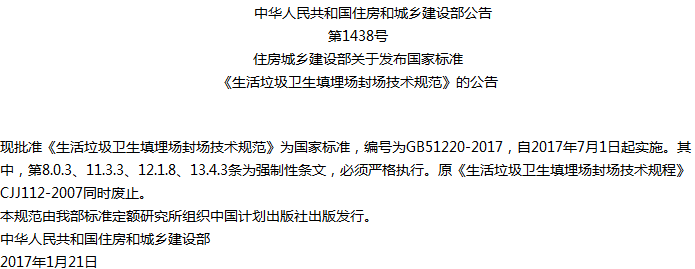 当前位置:首页 > 标准规范 > 生活垃圾卫生填埋场封场技术规范 <返回