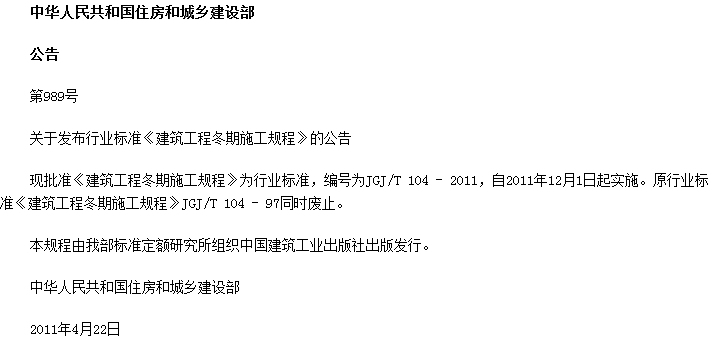 建筑工程冬期施工规程收藏