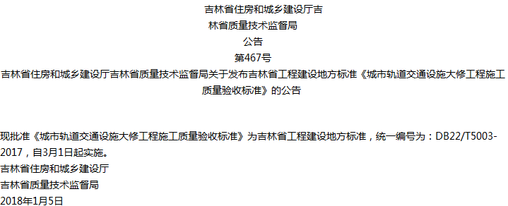 城市轨道交通设施大修工程施工质量验收标准收藏