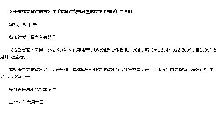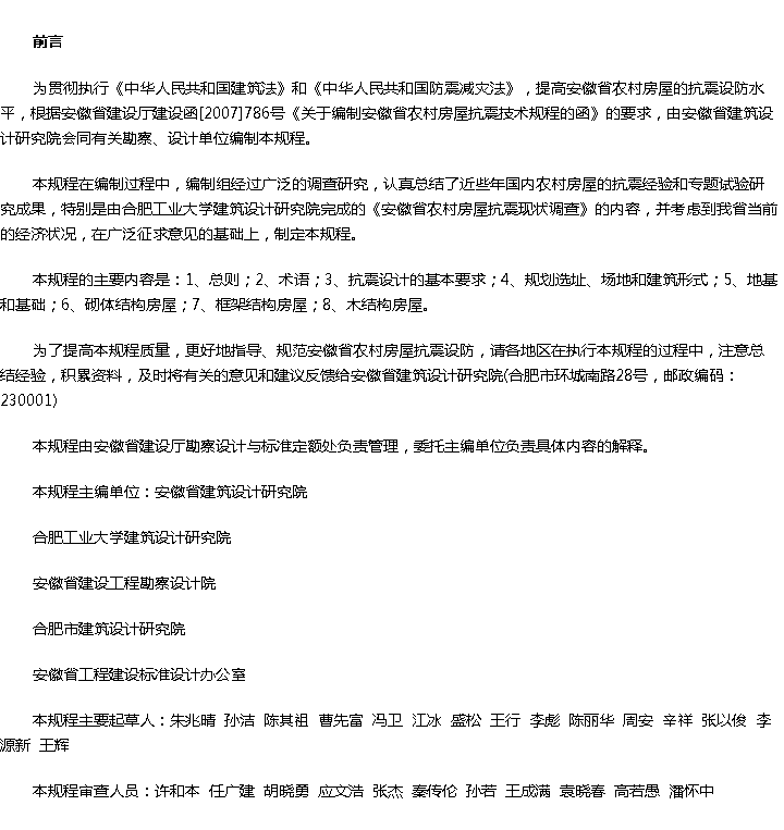 安徽省农村房屋抗震技术规程收藏