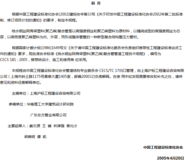 给水钢丝网骨架塑料(聚乙烯)复合管管道工程技术规程收藏