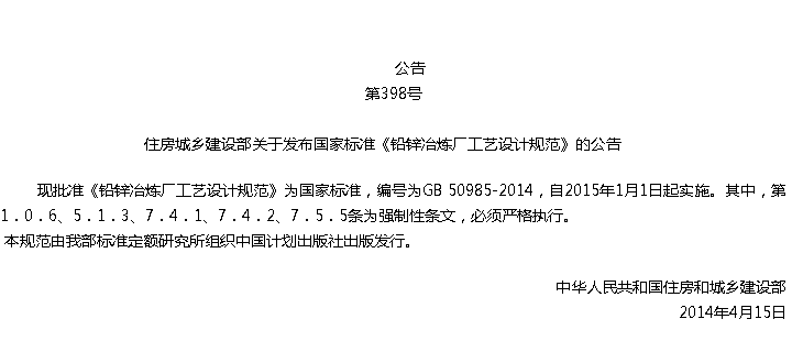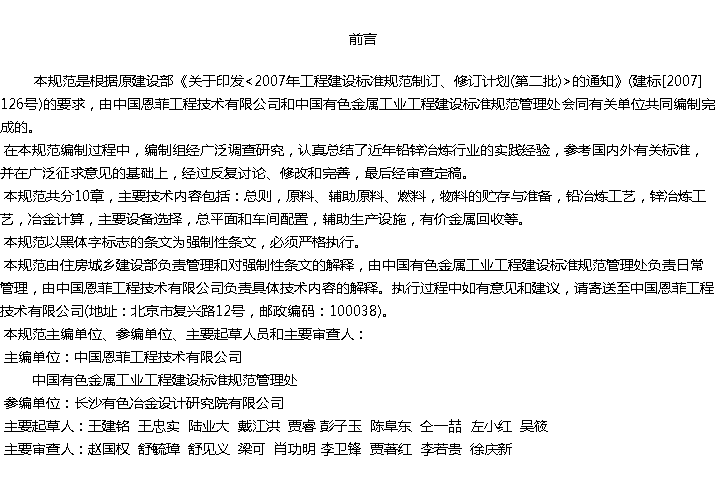 铅锌冶炼厂工艺设计规范收藏