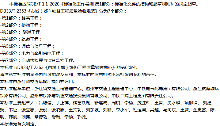 市域(郊)铁路工程质量验收规范第 6 部分:电力与牵引供电工程