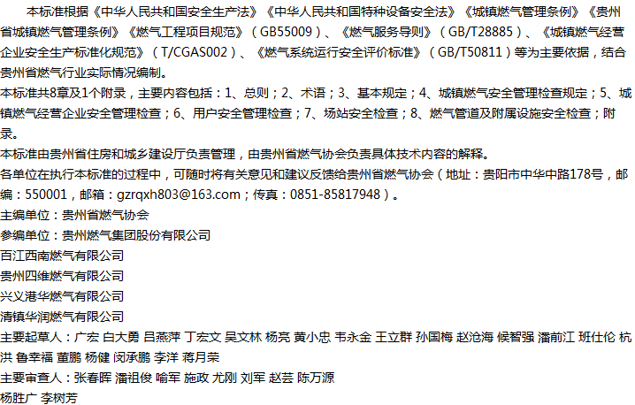当前位置:首页 > 标准规范 > 贵州省城镇燃气安全检查标准 <返回