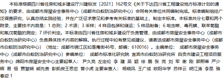 四川省城镇房屋白蚁预防工程药物土壤屏障检测和评价技术标准收藏
