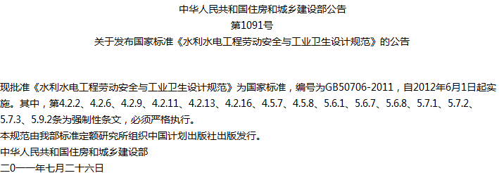 水利水电工程劳动安全与工业卫生设计规范收藏