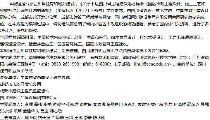 四川省园区市政管网工程设计、施工及验收标准收藏