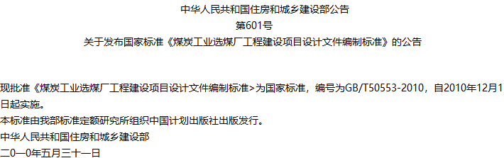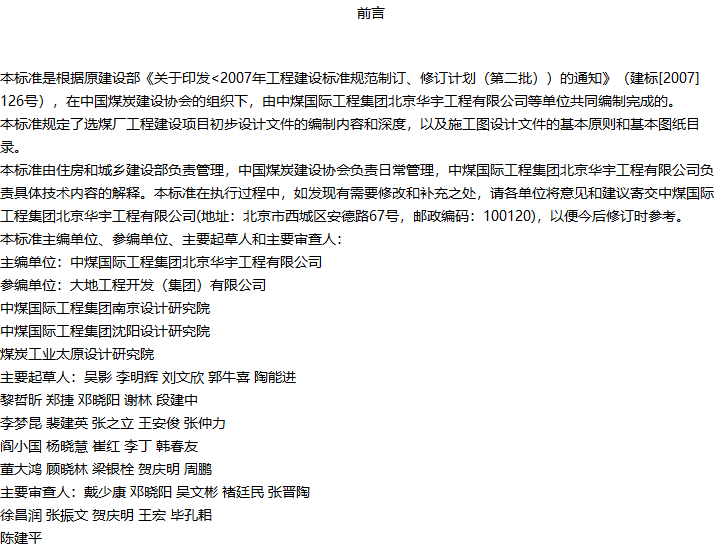 煤炭工业选煤厂工程建设项目设计文件编制标准收藏