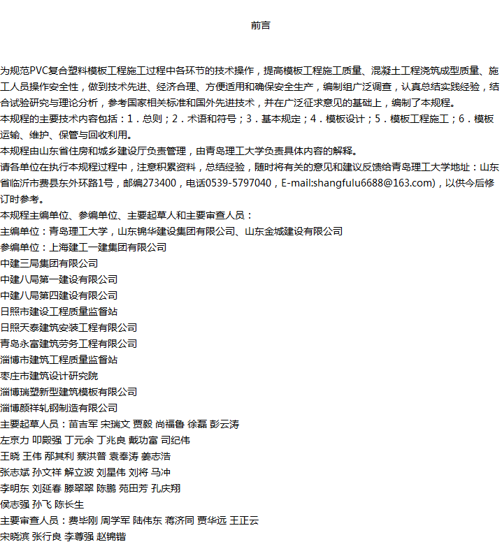 PVC复合塑料模板技术规程收藏