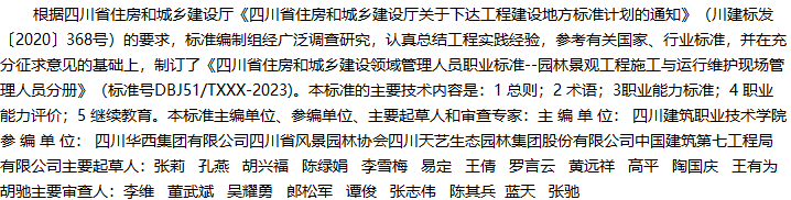 四川省住房和城乡建设领域管理人员职业标准园林景观工程施工与运行维护现场管理人员分册