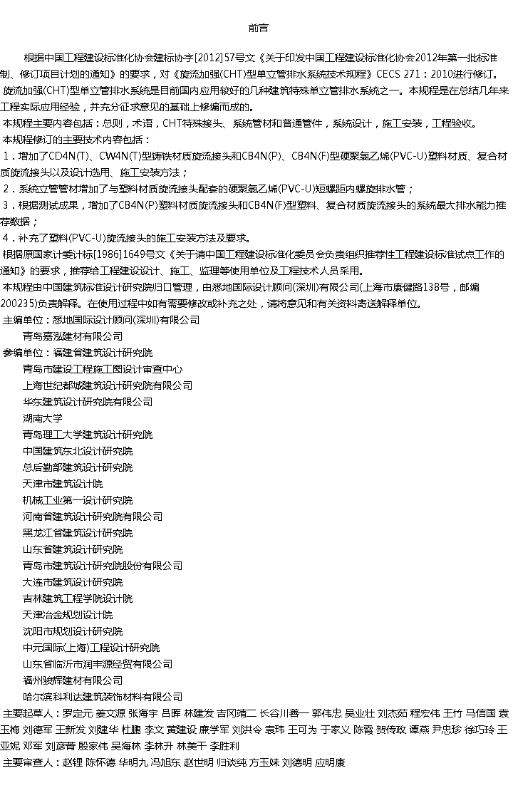 旋流加强(CHT)型特殊单立管排水系统技术规程收藏