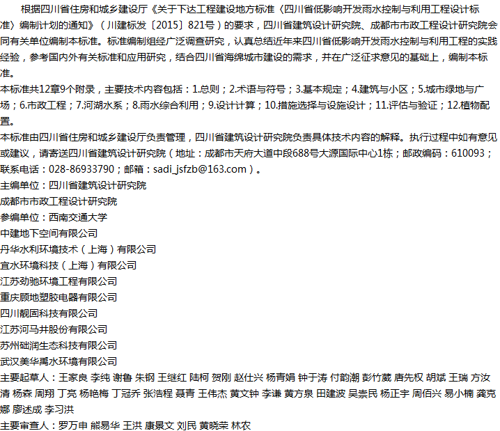四川省低影响开发雨水控制与利用工程设计标准收藏